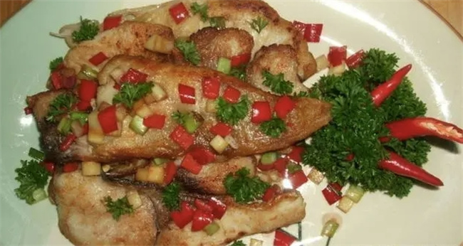 做法3:香煎石斑魚 準(zhǔn)備食材如下:石斑魚1條,青紅椒各1根,食鹽適量,黑胡椒粉適量 具體做法如下:將石斑魚清理干凈之后,去骨取肉,然后改刀成小塊,接著將魚肉用廚房紙巾吸干油分,再起平底鍋,刷上一層植物油,然后將魚塊放入鍋中,小火煎至兩面焦黃,出鍋前撒上食鹽和黑胡椒粉即可,也可以適當(dāng)?shù)娜錾锨嗉t椒粒提香點(diǎn)綴!