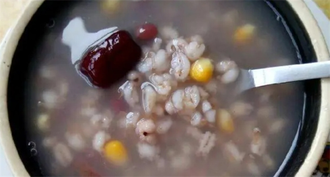 做法3:薏米大麥粥 準備食材如下:大麥100克,紅豆50克,薏米50克,玉米粒30克,紅棗5個,冰糖25克,大米50克 具體做法如下:大麥仁、薏仁、紅豆,放在一起洗凈泡一個小時,然后入鍋,再擠入玉米粒和紅棗,放入25克冰糖,加水熬煮,直到紅豆皮開始脫落,放入洗凈的大米一起熬煮到軟爛香糯即可。