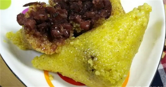 做法1:紅豆栗米粽子 準備食材如下:黃米1斤,紅豆200克,粽葉適量,棉線適量 具體做法如下:黃粟米和紅豆分別用水浸泡一晚上,新鮮粽葉提前用清水浸泡變軟,用剪刀將粽葉尾段剪掉,準備兩片粽葉,一定要粽葉正面朝內包,這樣比較好包,不容易裂.首先是卷一個錐子型,錐子型大概卷在離粽葉根部三分之一的位置比較好操作.要卷緊握緊,底部放一點黃粟米,需要尖部卷得夠緊才不露米,放入一勺紅豆,上面填上米,稍微抹平,米不要放太滿,離上沿要有一點距離,距離稍大一點好包上,用右手虎口部位,以及拇指食指,固定住粽子,另一只手捏住上面的粽葉覆蓋下來,用覆蓋下來的粽葉包裹住整個粽子,再用棉線將粽子纏緊,粽子就包好了,放高壓鍋開鍋后大概煮三十分鐘就完成了,吃的時候可以直接吃,也可以加些白糖!