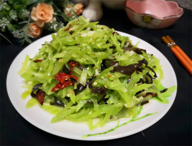 萵筍拌木耳不僅口感鮮美,而且營養(yǎng)豐富。萵筍中富含維生素C、膳食纖維、鉀等營養(yǎng)成分,可以有效地降低血脂、促進(jìn)腸道健康;而黑木耳中富含膠質(zhì)蛋白、多糖、膳食纖維等,具有美容養(yǎng)顏、滋潤皮膚、調(diào)節(jié)免疫系統(tǒng)等多種功效。此外,其中還加入了蒜末、辣椒等辛香味料,可以有效讓人消除疲勞、清熱解暑,提高食欲。 |