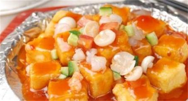 一、番茄蝦仁豆腐 1、需要準備西紅柿1個、蝦仁100克、嫩豆腐1塊、蒜2瓣、香蔥1根、鹽適量、料酒1匙。 2、將蝦仁先用少許鹽和料酒腌制10分鐘。 3、將豆腐切成指甲大小的方塊,西紅柿在表面切劃幾刀;蒜切末,香蔥切碎,備用。 4、調制番茄醬汁,將番茄醬3匙、鹽少許、糖1匙、玉米淀粉半匙、水適量、鹽少許調勻備用。 5、將鍋中水燒開后放入西紅柿煮幾分鐘,直至西紅柿表皮裂開,取出去皮并切成小丁。 6、將燙過西紅柿的水倒入豆腐丁中焯燙一下撈出備用。 7、再將炒鍋注油,煸香蒜末后、加入番茄丁炒兩分鐘,放入蝦仁炒至略變色、倒入番茄醬汁和豆腐丁,翻勻至湯汁變濃即可關火出鍋。