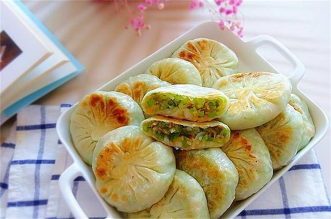 芹菜素餡小餡餅的具體做法: 一、所用食材: 二、做法: 1、首先和面,如果想晚上做,中午就可以把面和好,400克的面粉用水250克左右,把面團和得稍微軟一點,和成團后多餳一段時間,這樣做薄皮才不至于破皮。 2、芹菜摘掉葉子洗干凈后,用水焯一下,取出后剁碎,胡蘿卜切成小丁。 3、在碗里將剁碎的芹菜、胡蘿卜丁、一把紅薯粉、少許鹽、蔥花、蠔油、生抽攪拌均勻,然后放入適量的食用油繼續攪拌。 4、將醒好的面團分成小份搓成小球。 5、將小球搟成薄皮,中間放入適量的餡料,然后包裹成小餡餅。 6、在平底鍋中熱油,將小餡餅放入平底鍋中煎煮至金黃色即可。