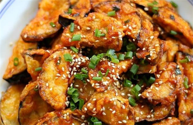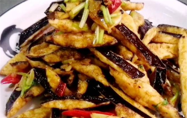制作過(guò)程: 1、將茄子洗凈并切成條狀,還要把大蒜和大蔥處理干凈,切成碎末和細(xì)絲。 2、將茄子放在碗里,撒入適量的面粉,保證每塊茄子被面粉均勻地包裹。 3、在炒鍋內(nèi)倒入適量食用油,將油燒熱后,將處理好的茄子放入炸制,直到呈現(xiàn)金黃色,撈出并控油備用。 4、將炸好的茄子放入大碗里,撒入蒜末和蔥絲,倒入適量的醋、食鹽、生抽、小米椒等佐料,全部攪拌均勻即可食用。