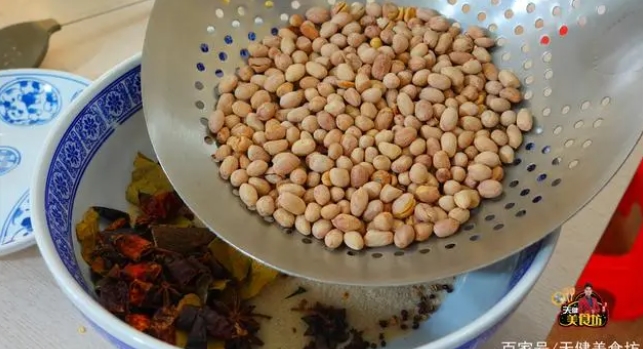 詳細(xì)做法如下: 第一步:準(zhǔn)備一個較大的盆,把花生米放入盆中,再放入沒過花生米的清水,提前浸泡半個小時,把花生米泡濕,泡至微微起泡時,盛出控水備用。 第二步:把準(zhǔn)備好的香料【八角、桂皮、香葉、花椒、干辣椒】等,放到水盆里,用清水簡單清洗一下,洗去表面的灰塵,然后撈出控水備用。 第三步:起鍋不加油,放入2包食鹽(大概1000克),中火翻炒5分鐘,把食鹽炒熱。 第四步:等食鹽炒熱之后,再把泡好的花生米放入鍋中,轉(zhuǎn)成小火,翻炒均勻,讓食鹽和花生米混合在一起,期間邊加熱邊慢慢翻炒,把花生米的水分炒干,剛開始如果的花生米外皮比較濕,所以會粘上一些食鹽。 第五步:等花生米炒熟炒干后,粘在上面的食鹽會慢慢脫落,這時再放入準(zhǔn)備好的香料【八角、桂皮、香葉、花椒、干辣椒】,繼續(xù)邊加熱邊翻炒,把香味炒出來,炒到花生米上面。 第六步:等花生米炒至干香之后出鍋,挑出香料,再用漏勺把食鹽漏掉,這樣我們的【鹽炒花生米】就制作完成了,放涼后再吃酥脆可口,好吃極了。 第七步:炒花生米剩下的食鹽和香料放涼后,可以拿個袋子裝起來,以后要做可以重復(fù)使用,也可以拿來焗大蝦或者做其他好吃的。