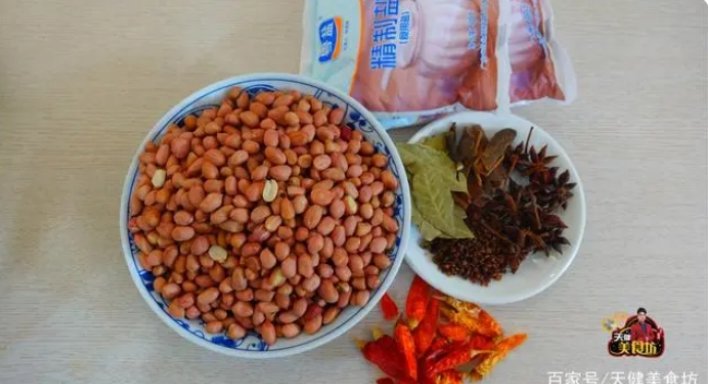 在開始正式制作之前呢,我們首先需要準(zhǔn)備以下食材:花生米500克,八角8個,桂皮2小塊,香葉5片,干辣椒20個,花椒10克,食鹽2包
