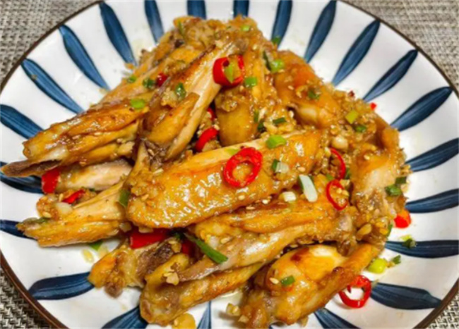 一、烤豬蹄 1、準備一整只前豬蹄,砍成大塊狀。 2、將豬蹄冷水下鍋焯水,去掉腥味。 3、加入鹵料和調料,鹵1個小時左右。 4、鹵好之后放入烤盤或者空氣炸鍋,刷上油和孜然粉、海椒面和燒烤料,開200度的大火烤20分鐘左右,出鍋撒上芝麻和蔥花即可。 二、蒜香雞翅 1、將雞翅改刀劃幾個口,焯水去腥味,撈出后放入切好的蒜末、料酒、生抽、蠔油、糖中腌制25分鐘左右。 2、起鍋燒油小火煎雞翅,將雞翅煎至兩面金褐色后撈出。 3、熱鍋涼油,放入蒜末和辣椒翻炒出香味倒入雞翅繼續翻炒,加入少許鹽和雞精炒勻即可。