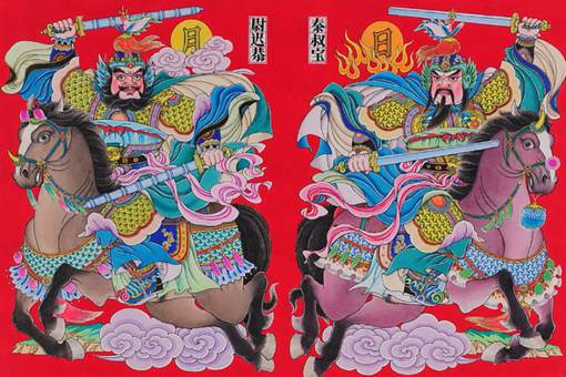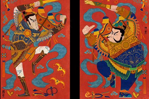 門神,即司門守衛之神,是農歷新年貼于門上的一種畫類。桃木能辟邪古人早知道。據《風俗通》,除夕在門戶上裝飾緝拿妖魔鬼怪的桃人神像,是東漢時的風俗。到了南北朝,以桃木板上刻畫神人就成了“桃符”,新年正月初一日掛在家門兩邊,左神荼、右郁壘。這神荼和郁壘“桃符”又有個名稱叫“門神”,辟邪保衛一家平安。 1.為什么要貼門神?農歷的春節,是最重要,最隆重的傳統節日,家家戶戶都會團聚,一起慶祝,在除夕前,大家都會貼對聯,貼門神,為什么要貼門神呢?