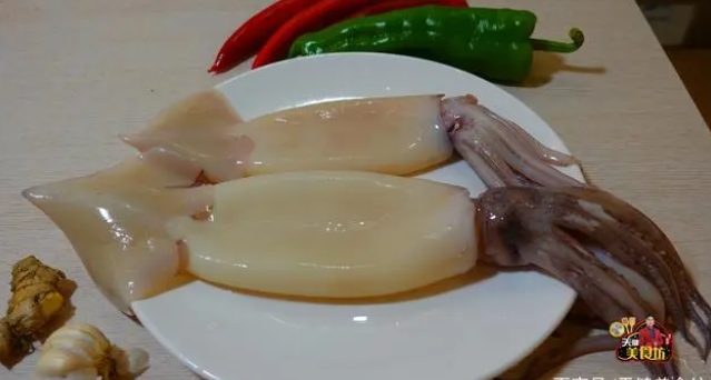 說到魷魚,相信有不少的朋友都喜歡吃,魷魚的吃法很多,蒸、煮、燜、炸、燉、烤、炒都有,不知道大家都喜歡什么樣的吃法呢?魷魚的口感脆爽,帶有略微的咸味,在廣東很多的飯店喜歡拿來爆炒。這期的美食教程呢,天健美食坊就準備給大家分享一個【爆炒魷魚】的家庭做法,喜歡吃魷魚的朋友們,就一起來看看怎么做的吧! 在開始正式制作之前呢,我們首先需要準備以下食材:魷魚2條,青紅椒各1根,生姜1塊,大蒜5瓣, 食鹽1茶匙,料酒2湯匙,雞粉1湯匙,水淀粉2湯匙