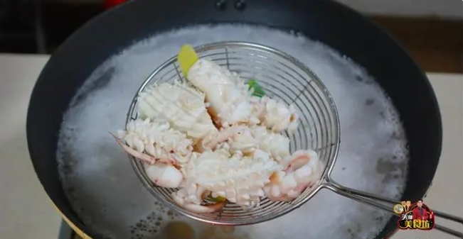 詳細做法如下: 第一步:將魷魚的外皮撕掉,清洗干凈之后,把魚身割開,先斜刀打上刀花,但是注意刀要輕,不要切斷了,一面打上刀花之后,換個方向,從另一個方向斜著打刀花,讓刀花形成一個小的菱形方格,再改刀切成小方塊,這樣炒出來就會卷起來,還有花條。處理完魚身后,把魷魚須也切成小段,裝盤備用。 第二步:青紅椒去蒂去籽之后,切成小長條,再斜刀切成菱形小塊,裝盤備用。生姜和大蒜切成片,裝盤備用。 第三步:起鍋加入清水,魷魚冷水下鍋,再放入生姜的邊角料和幾片蔥,淋上少許料酒,大火煮開焯水,煮至魷魚卷起來后,出鍋裝盤備用。