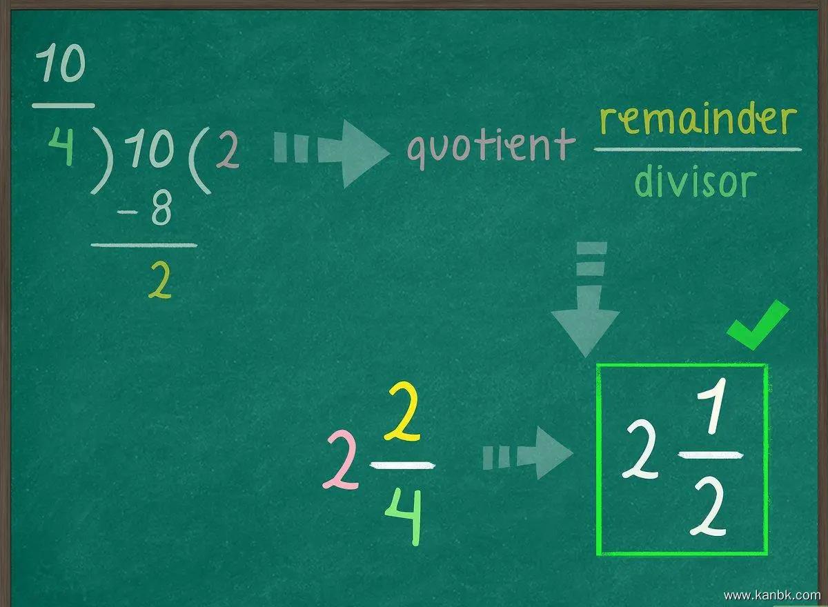 分數是數學中的基本概念之一,它由分子和分母組成。有時候,我們需要將帶分數簡化約分,以便更好地計算或比較大小。以下是一些簡單而有效的方法,可以幫助您簡化帶分數并進行約分。 將帶分數轉換為假分數 首先,將帶分數轉換為假分數。例如,對于帶分數3 2/5,將其轉換為17/5。這種方法可以使約分更加容易,因為它取消了整數部分,并將分子和分母提取出來進行計算。 約分分子和分母 將分子和分母都除以它們的公因數,以縮小分數的值。例如,在17/5中,分子為17,分母為5,它們的最大公因數為1,因此17/5不能被進一步約分。但如果分子和分母有公因數,那么可以將它們同時除以它們的最大公因數,以得到最簡分數。 找到最大公因數 為了找到分子和分母的最大公因數,可以使用歐幾里得算法(也稱為輾轉相除法)。該算法的步驟如下: