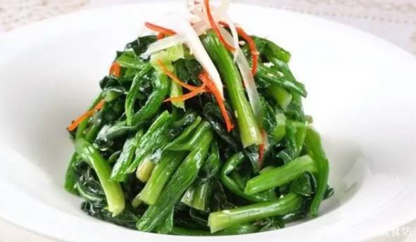 NO.1 熗菠菜 準備食材如下:菠菜500克,食鹽1茶匙,花椒少許,干辣椒5個,植物油適量 具體做法如下:菠菜洗凈放加有鹽的滾水中焯熟,撈出瀝干水份,拌入少許鹽,鍋內燒熱油放入干辣椒,花椒粒爆香,趁熱倒入菠菜上拌勻即可!