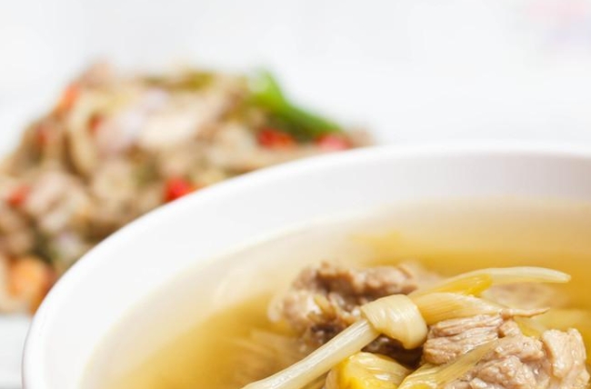 茶色骨湯 圖片來自網絡 對了,我還給這道菜取了個非常文雅的名字,叫“茶海竹排”,介紹完做法后,給大家解釋名字的由來。 “茶海竹排”制作配方:食材:豬肋排600g 濕料:姜10g;蔥10g 調料:生抽5g,蠔油5g,甜醋15g,白糖15g,鹽9g,花雕酒5g,辣妹子3g,十三香2g,白胡椒粉5g,油適量。 具體步驟:1豬肋排反復清洗,用清水泡出內部血水。不過泡多久血水都不會泡干凈,我一般做法是泡2分鐘沖洗一次,反復5-6次。 2取一個砂鍋,先把洗好的肋排放進去,然后加入凈化水。燉湯最好的水是山泉水,其次是礦物質水,然后是凈化水,最后是純凈水。 3大火燒開,加入姜片和蔥段,加入2g花雕酒,轉最小的煨湯火,蓋上蓋子,煨兩個小時。 4煨湯的同時,調一個魚香汁,甜醋15g;白糖15g;生抽蠔油各5g;鹽4g;花雕酒3g;十三香2g;胡椒粉3g。加入少許清水攪拌均勻。 5骨湯煨好以后加入5g鹽和3g胡椒粉,可以小火繼續煨也可以關火保溫,把排骨用筷子小心的夾出來。 6取一個平底鍋,最好是不粘鍋,倒入少許油,把燉好的排骨用小火慢慢煎,煎出焦香味后放入辣妹子炒出紅油,然后倒入之前調好的魚香汁。 7大火燒開,然后轉中小火慢慢收汁,讓味道進入排骨中。 8出鍋后,乘上一碗米飯和一碗骨頭湯,一口肉一口湯,一口肉一口湯。