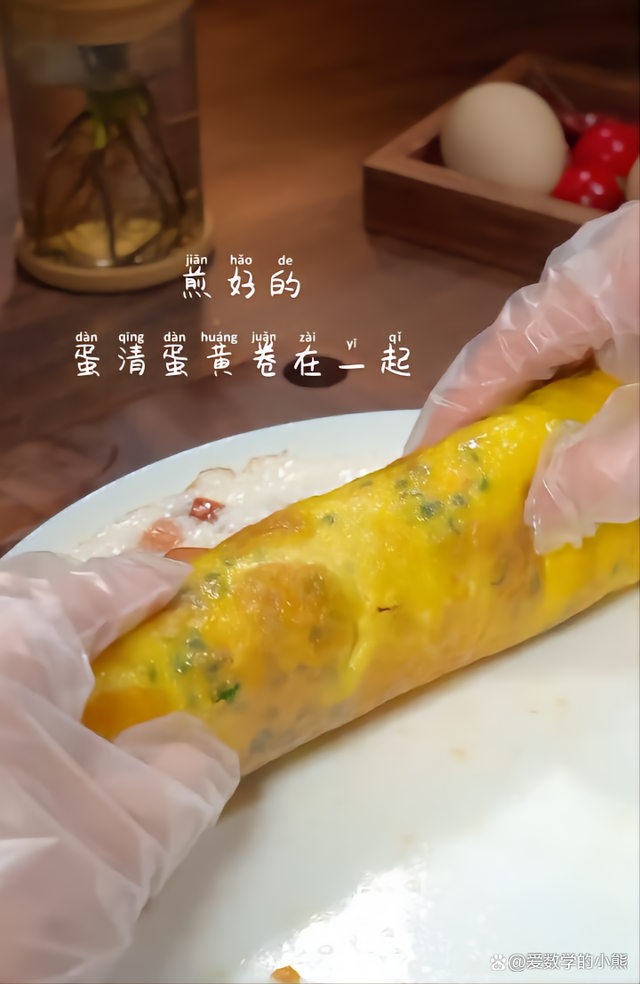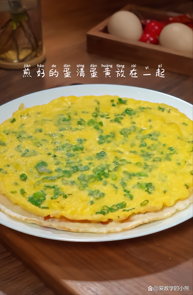 5、倒入蛋清,小火漫煎熟后撈出備用