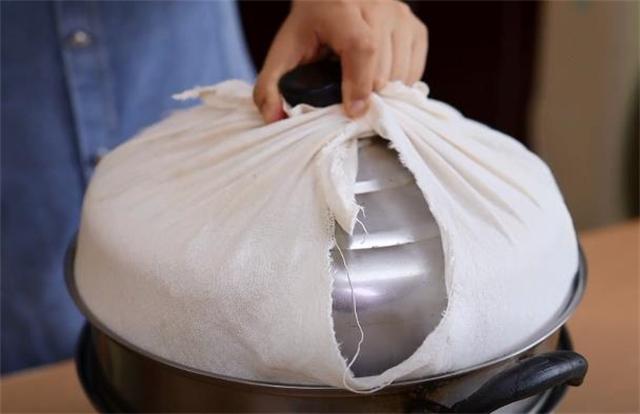 6.蒸鍋的蓋子上面記得包一層紗布,這樣做蒸好的饅頭表面才更光滑,涼水上鍋開鍋蒸20分鐘,燜5分鐘出鍋。