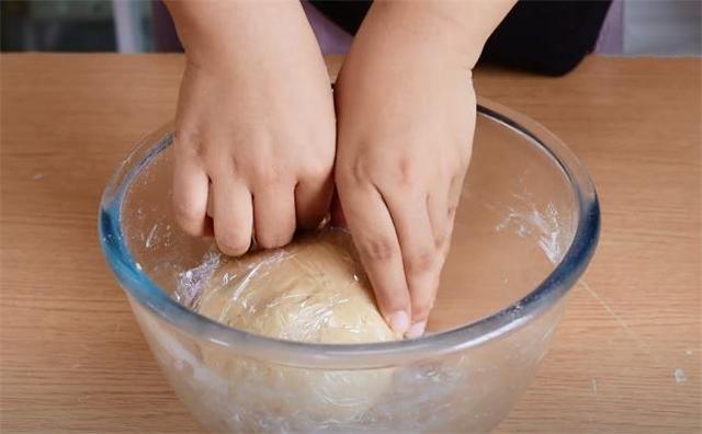 1.先做一個(gè)油皮,中筋面粉70g,倒上35g的清水,18g的花生油,揉上3-5分鐘,就能到這種光滑的程度了,用保鮮膜密封好,餳上20分鐘。