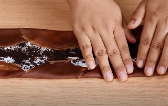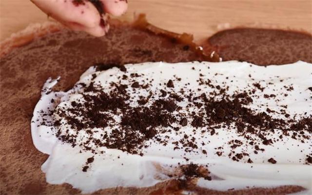 12.最后的時(shí)候撒上一些可可粉,我們的毛巾卷就做好了。