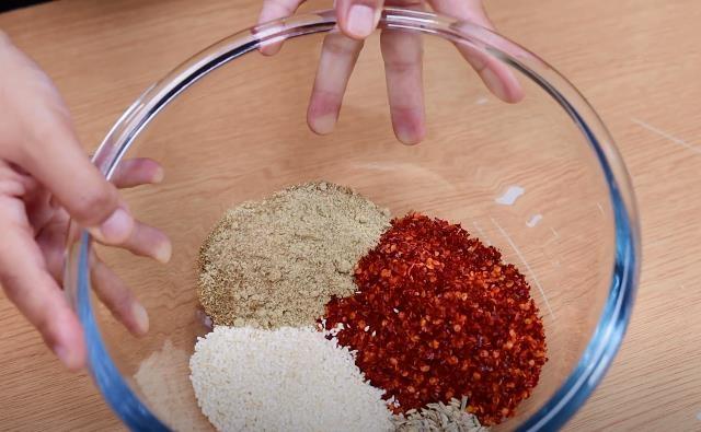 5.再準備一些辣椒粉、孜然粉、芝麻和小茴香。
