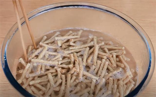 準備食材: 豆棍、食用油、香菜、小蔥、八角、草果、大蔥段、姜片、洋蔥、花椒、辣椒粉、孜然粉、芝麻、小茴香、白糖、鹽 具體做法: