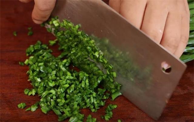 1.準備一把韭菜洗凈,先把韭菜切碎。