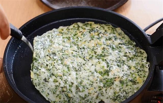 6.韭菜炒香的時候再烙,這樣味道會更香,全程不用面粉,攤好的餅子也會更柔軟。 |