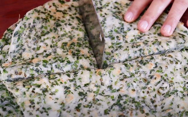 5.烙好之后用刀切成小塊即可開吃。
