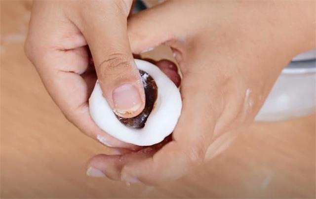 3.這個是提前準備好的豆沙餡,直接包進去。