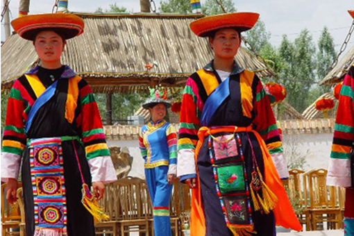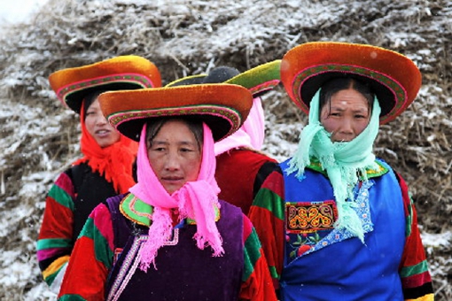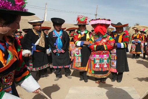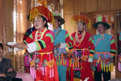 頭飾對于土族人民來說是一種非常美麗的象征,在他們的文化當中占有者很重要的地位。尤其是土族婦女的頭飾,種類非常的繁多,但是又非常的笨重,所以在干農(nóng)活或是行走的時候很是不方便。到了20世紀30年代的時候,土族的婦女就已經(jīng)不在攜帶古老而笨重的頭飾了,但是這些頭飾卻是土族璀璨文化的見證。  青海互助土族自治縣的土族人民,特別注重服飾美。現(xiàn)在土族婦女一般都把頭發(fā)梳成兩根長辮子,末梢相連垂在背后,還要拴上黑色或紅色的絲絨或絲穗,然后再戴上彩色的圓形織錦絨氈帽。在60多年前,土族婦女的頭飾則要復雜的多。那時他們把頭飾稱為扭達,由于不同的地方的婦女佩戴的頭飾不同,所以扭達有八九種之多。下面介紹幾種有特色的招達。 吐渾扭達也叫干糧頭。形狀好似圓餅,上面鑲嵌著五色珠串和海螺、海貝殼等,額前垂吊著許多束紫紅色的絲穗。吐渾扭達是最古老、最高貴的一種頭飾,從某種意義上說它是土族貴族婦女的頭飾。佩戴這種扭達的地區(qū)范圍很小,僅限于紅崖子溝、土觀村等幾個村莊。按當?shù)氐乃滓?guī),土觀村的姑娘嫁到其他地方,她們?nèi)匀灰宕魍聹喤み_;其他村莊的姑娘嫁到土觀村,則必須改戴吐渾扭達。  佩戴吐渾扭達十分復雜,要將兩塊10厘米長、5厘米寬的長方形薄銅片,用絲線連在一起卡在兩鬢間,將一個用牛尾或長發(fā)做的半月形卡子固定在腦后,然后戴上扭達,扣上銀制碗狀向斗,用銀簪把向斗、扭達、發(fā)髻,緊緊地別在一起,背后還要掛兩束紅色棉線繩子,再戴上銀制的大耳環(huán)和用海螺圓片做的大項鏈,整個裝飾艷麗華貴。 適格扭達因其形狀好似一個大簸箕,所以也叫簸箕頭。從側(cè)面看,這種頭飾又像一個馬鞍子的前半部。佩戴適格扭達的地方比較廣泛,在互助縣城威遠鎮(zhèn)周圍的婦女都佩戴適格扭達。這種頭飾先用當?shù)禺a(chǎn)的一種柔軟有彈性的草做成骨架,再用硬紙和粗布條粘糊后制成。其正面貼上金銀箔片,再粘上數(shù)層折疊起來的五色彩布條,周圍鑲嵌著一圈一圈的云片,邊緣垂吊兩層紅黃兩色的小絲穗,每層約20多條,額部垂吊著數(shù)十條10多厘米長的紅絲穗。  捺仁扭達這種頭飾最顯眼的地方,是在腦后邊向前豎起一根銅制的叉劍,所以也稱其為三叉頭。這種頭飾的背后有一個直徑10多厘米的圓盤,盤是用貝殼、珊瑚、松石等小珠子串盤而成的,其上飾有銅管、銅片、瓷珠、絲穗等小物件,依土家族的習俗小物件多為美。 加斯扭達這種扭達分鏵尖頭和馬鞍撬兩種,也叫大加斯扭達和小加斯扭達。其上飾有長短不同的絲穗。  此外還有形似漏凹槽的雪古郎扭達、索布斗扭達等,據(jù)傳古代土族婦女能征善戰(zhàn)、馳騁疆場,她們勇敢頑強,身披戰(zhàn)袍十分俊美。后來逐漸定居放牧,以至過渡到以農(nóng)為主兼營畜牧業(yè),婦女們便將戰(zhàn)袍、頭盔,甚至兵器裝于頭飾上,因此這些扭達異常華麗,好像是古代宮女的頭飾。 戴上扭達后,因為頭飾和其他飾物太重,所以不能左顧右盼,只能連身子一起轉(zhuǎn)過去,十分不方便。婦女在轉(zhuǎn)到操持家務(wù)和農(nóng)業(yè)生產(chǎn)后,繁重的農(nóng)業(yè)生產(chǎn)和家務(wù)勞動不再適宜身著古裝,所以在20世紀30年代,青海省強行改變土族服飾,從此這些扭達便不在土族婦女中流行了。那些各種各樣的扭達,只有在研究土族民族發(fā)展史的博物館中才能見到。