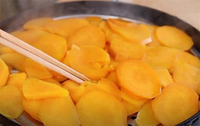 1.地瓜切好片之后上鍋蒸,我蒸了大概有15分鐘的時間,已經是非常軟糯的狀態了。