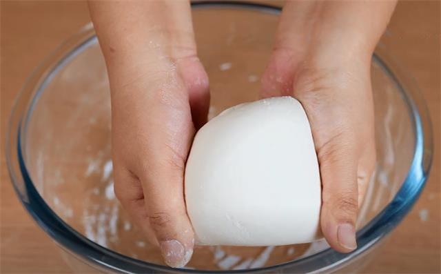 1.200g面粉里面我們放上2g酵母粉,和面的時候直接用100g的溫水,這個面團的含水量比較少,所以說前期一定要多揉,最后揉到這種勻稱的狀態就可以了。