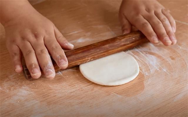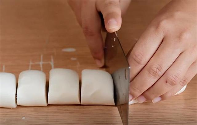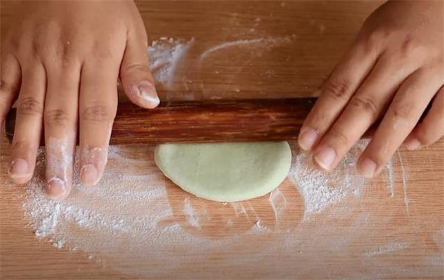 5.我們先揉一下白色面團,直接搟成圓餅。
