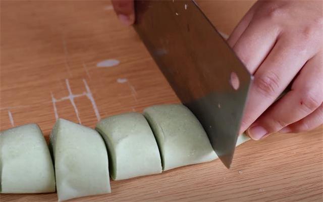 準備食材: 普通面粉、酵母粉、溫水、菠菜粉、豆沙餡 具體做法: