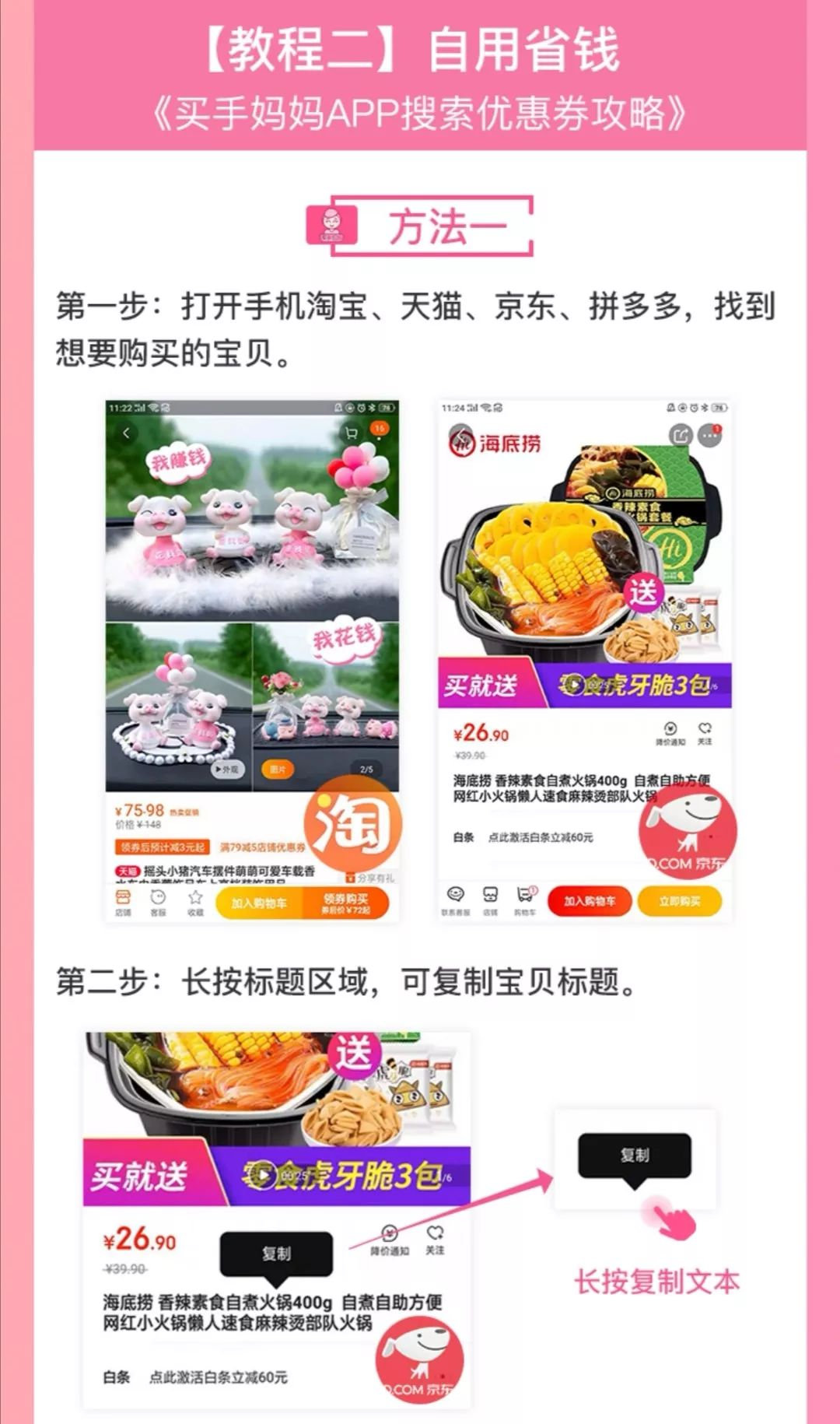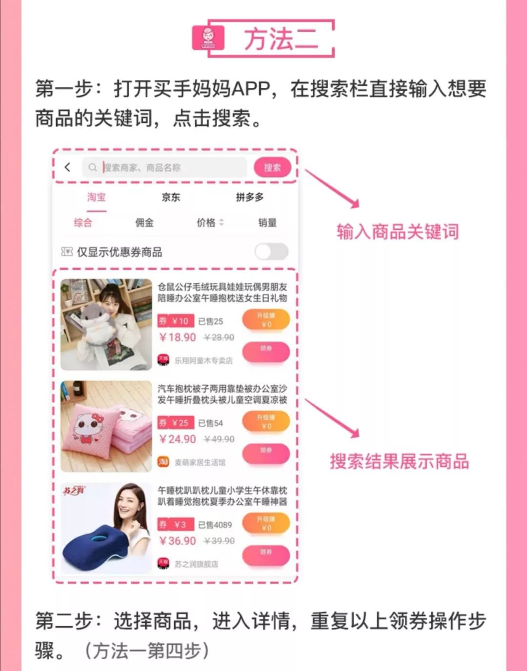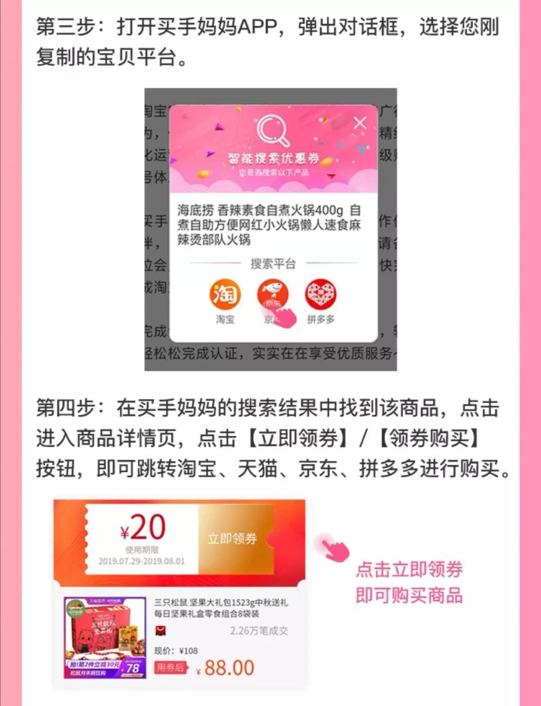方法二:想購買什么東西時(shí)打開app,輸入明細(xì)或者品牌,點(diǎn)擊搜索即可出來,選擇相對(duì)應(yīng)的搜索商品點(diǎn)擊購買,跳轉(zhuǎn)到官方平臺(tái)即可!! 買手媽媽—同平臺(tái)自用最省,傭金最高,所見即所得,零套路!!買手媽媽邀請(qǐng)碼:5721142
