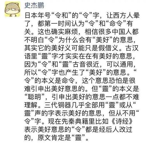5月1日,日本正式進入“令和”時代。之前日本使用的年號全部出自中國古籍,這次日本是第一次在本國古籍中選取了兩個字當做新年號。實際上“令和”二字的出處和寓意還是和中國文化離不開關(guān)系,畢竟日本古時候很多文學精髓都還是師出唐朝,所以也借用了中文的意思。下面就為大家介紹下“令和”的寓意,和在古代的含義究竟是什么,大家要是感興趣的話就一起來看看吧。 ![]() 2019年5月1日零時,日本將開始啟用“令和”為年號,官方的英文翻譯為“Beautiful Harmony”。日本首相安倍晉三解釋寓意說:“蘊含了在人們的美麗心靈相互靠近之中,文化誕生并成長的意思”。 “令和”是日本歷史上的第248個年號,出自《萬葉集.梅花歌卅二首并序》中的“于時初春令月,氣淑風和”,這也是日本首次日本古代典籍作為年號的引用來源。可它依舊沒有徹底擺脫中國文化的影子,在日本巖波書局出版的《萬葉集》中,關(guān)于“初春令月,氣淑風和”的注解,曾明確提到該句出于張衡《歸田賦》的“仲春令月,時和氣清”。 然而,即便是與中國古籍有著淵源,將“令”解釋為“美好”仍然讓人難以理解。 《悠悠我心》的作者史杰鵬對此特意發(fā)出了一條朋友圈進行解釋:古漢語里‘靈’字才實實在在有美好的意思,因為‘令’和‘靈’古音很近,可以通用,所以‘令’字也產(chǎn)生了‘美好’的意思。” ![]() 令和靈 沿著史杰鵬的思路,我們可以對“令”和“靈”追本溯源。 “令”是一個會意字,本義即為命令,是一個人坐在木鐸下的樣子,取古代振鐸以發(fā)號令之義。而“靈”實際上是漢字“靈”的繁體字形式,屬于會意兼形聲字。《說文解字》中解釋為“巫以玉事神”,即巫師捧著玉舞蹈來侍奉神靈,《廣韻·青韻》則解釋為“小熱也”,即微溫。這兩種解釋如今都不再使用,卻由此引申出了“福佑”“聰明”“美好”等含義。 在《詩經(jīng)·鄘風·定之方中》即有將“靈”作“美好”之義的用法。“靈雨既零,命彼倌人,星言夙駕,說于桑田。”翻譯成現(xiàn)代的形式就是“好雨夜間下已停,吩咐駕車小倌人。天睛早早把車趕,歇在桑田勸農(nóng)耕”。 ![]() 《詩經(jīng)》中也不乏將“令”用作“美好”之義的例子,對此史杰鵬認為“《詩經(jīng)》表示美好意思的‘令’都是經(jīng)后人改過的,原文肯定是‘靈’”。依據(jù)是夏商周三代出土的銅器中,銘文幾乎全部是用“靈”或者從“令”聲的字表示美好的意思。 字與詩 漢字與詩篇無疑承載著中國文化的精髓,每一個漢字、每一句詩的背后都是無可估量的文化意義,“令”與“靈”在這里只是一個縮影。千百年前的詩人用筆墨書寫出的美好到今天仍蕩滌在人們的心間,詩詞間的每個字都是歷史的積淀,值得玩味。可惜的是,現(xiàn)代人似乎已經(jīng)脫離詩意太久,即使讀詩也多是囫圇吞棗,斷章取義。 今天,當我們表達情感傳遞情思時常常會借助于詩詞。戀人間常言“死生契闊,與子成說”,想起沙場的豪情,人們?nèi)詴浖澳恰鞍税倮锓主庀轮耍迨曳饴暋钡膱鼍啊ぁぁぁぁぁ?/p> 但何為“契闊”?“斷”真得只是斬斷之義?那“八百里”又是什么呢?如果問及細處,這些耳熟能詳?shù)脑娪卸嗌贂谖覀冄劾镒兊媚吧? 此處舉例的幾個問題實則都來自于史杰鵬在《悠悠我心:梁惠王古詩詞二十講》中的賞析。 ![]() 他在書中提到,看到一個詞,首先應(yīng)該看組成這個詞的字古音有沒有關(guān)系,有關(guān)系很可能就是連綿詞。比如“契闊”一詞就是連綿詞,只是記一個音,與字本身無關(guān)。 “契闊”與“勤苦”從字面上看毫無關(guān)聯(lián),但從連綿詞的角度看就不難理解了。八百里當然也不是真的距離,而是一種馬的名稱,《世說新語》提到,王君夫有牛,名“八百里駁”,非常珍愛。王武子和君夫用牛打賭。君夫輸了,王武子命人挖出了牛心燒好呈上,自己只吃了一口就走了,這就是魏晉人的率性。此處辛棄疾用八百里代指牛,豪氣之中又添豪情。 古與今 用小說筆法剝開古文字的神秘外衣,還原出古人的實際生活狀態(tài)是《悠悠我心》最大的特點,也是這本書易于人們品讀的原因。 詩詞于今人已經(jīng)是一段遙遠的歷史,企圖觸及卻又常常望而卻步,時間可以積淀出文明,成就無數(shù)佳話,但也形成了一道鴻溝。 史杰鵬在書中寫道:“不妨把唐詩想象為一個璀璨的星球,那些天才的詩人,就是這個星球發(fā)出的光,依照他們的作品的偉大成都,那些光束有大有小,有粗有細;有的光芒顏色是一樣的,只有大小粗細之分;有的則不同。” 可往往我們最無奈的就是這浩瀚星辰與我們相隔太遠了。我們?nèi)鄙俚牟皇茄鐾强盏脑竿皇且桓鼻逦难坨R。小說式的筆法、口語化的幽默表達無疑成為了一條古今間的通道。 ![]() 我們?yōu)槭裁匆x詩?為什么一定要跨越歷史去尋覓精神的歸屬? 正如書的封面上寫著的那樣,“看偉大的作品,會有如逢故人的感覺”。 讀陶淵明,我們體會到庸常生活里骨子里對特立獨行的向往;讀李賀,我們看到詭譎之中的閃光;讀溫庭筠,我們于碧波粼粼中追慕著那顆赤子之心... 回歸到開頭的話題,“令”為什么會解釋成美好呢?學術(shù)解釋的背后其實是我們都應(yīng)該尋覓的文化軌跡和詩情畫意。 |