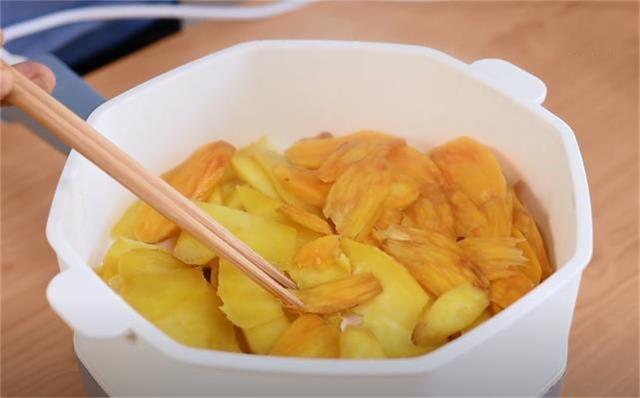 2.紅薯切好之后直接放在蒸屜里面,大火蒸熟,上汽后蒸15分鐘左右,這個地瓜是已經非常軟糯的狀態了。(www.ws46.com)
