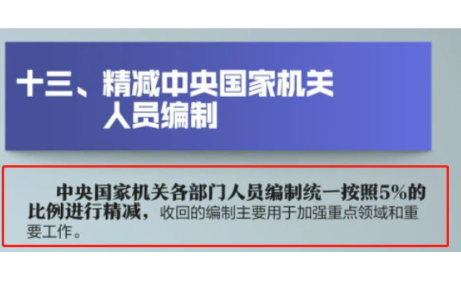 這意味著中央在做結構性的優化。任何一個機構或者組織想要達到充分的發揮,就必然離不開一套完整的結構。收回5%的編制并不意味著裁減,而是用于各個重點工作的空缺。中央機關人員編制縮減5%是一項重要的改革舉措。在過去的幾十年中,我國政府機構規模不斷擴大,人員編制也不斷增加。