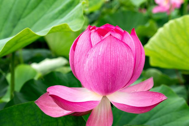 荷花的樣子非常美麗,其花瓣通常有十幾片,顏色有紅色、粉色、白色等多種顏色,層層疊疊,非常壯觀。荷花的葉子大而圓,綠色,用于遮陽和增加觀賞價值。荷花的莖稈粗壯,不易倒伏。