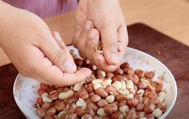 2.現在我們再來處理一下花生的部分,炒熟了之后直接把皮給搓掉就行了。(www.ws46.com)