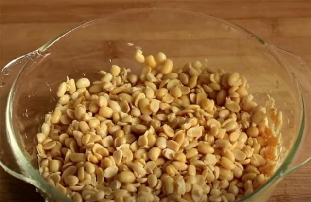 2.煮熟后放進涼水里,用手把黃豆皮搓掉,黃豆皮舀出來扔掉。(www.ws46.Com)