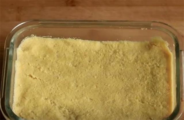 5.模具里刷點熟油,放進去壓實壓平,放涼后在冰箱冷藏半個小時。