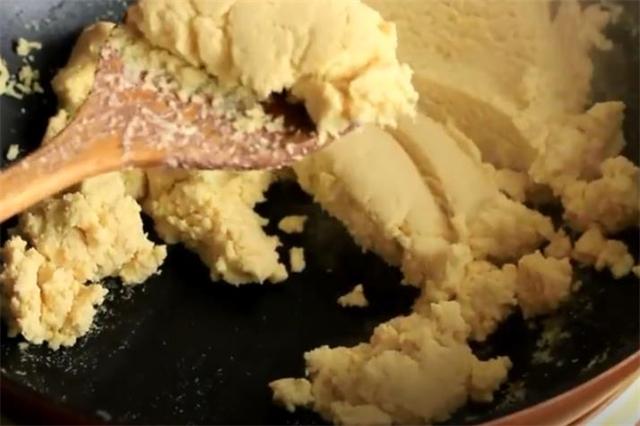 4.倒進鍋里后再加一勺白糖,然后開大火,不停地攪拌防止糊鍋,熬成這種粘稠狀就可以了。
