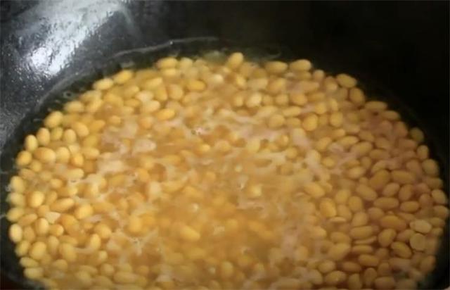 1.這個是提前泡了一夜的黃豆,放鍋里煮熟。