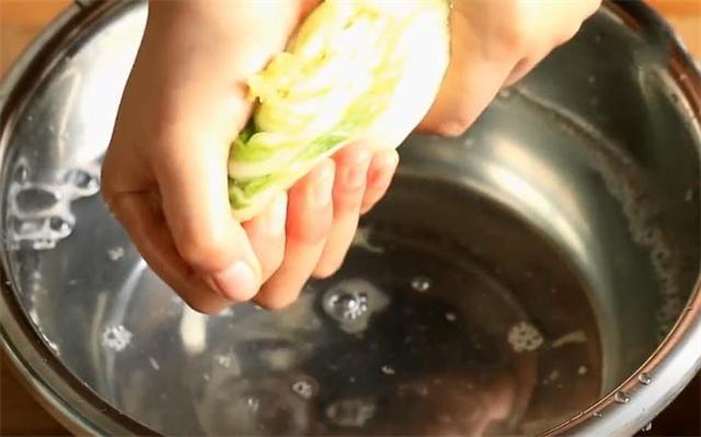 2.把腌出的水分倒掉再清洗干凈,用力把水分攥干。