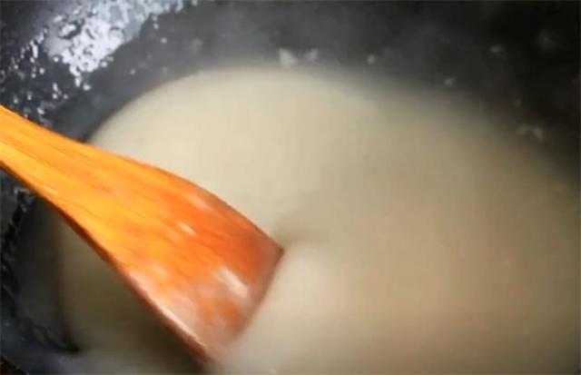 4.300g水里加100g糯米粉,煮至這樣粘稠無顆粒時關火,放涼備用。