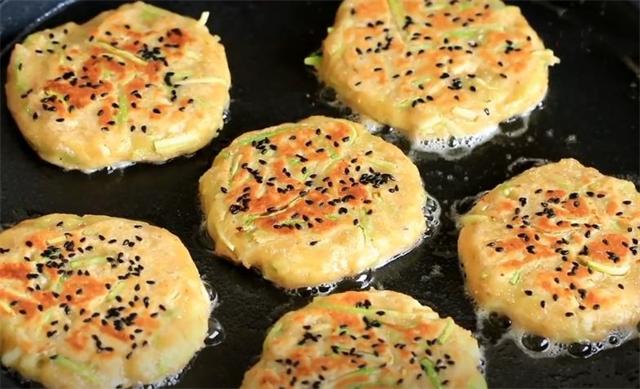 4.電餅鐺刷點(diǎn)食用油,手上抹點(diǎn)油防止粘手,揪一小塊團(tuán)成團(tuán),用手按下去按成圓餅,再撒上黑芝麻,就這樣來回翻面烙,烙熟后就可以出鍋了。