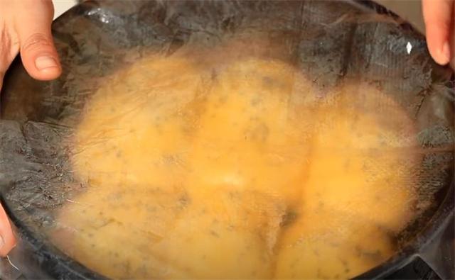8.上面蓋一層耐高溫的薄膜,防止水蒸氣落到里面,蓋上蓋子蒸50分鐘左右。
