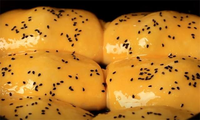 7.時間到了上面刷一層食用油,再撒點黑芝麻。