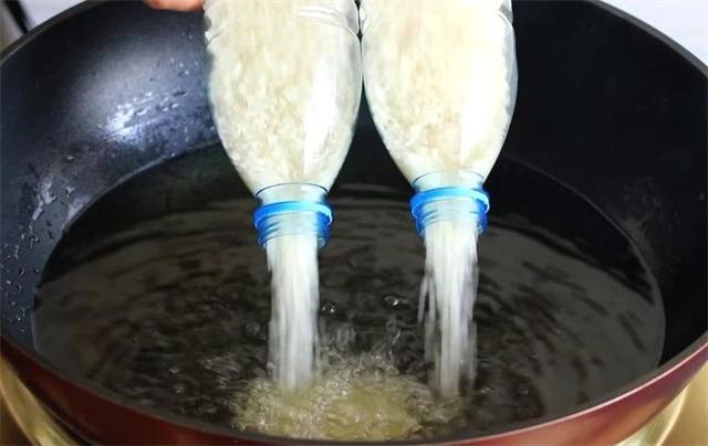 2.油溫八成熱大米下鍋炸,炸至飄起熟透后撈出。