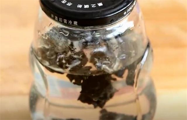 1.首先準備一個瓶子,加入冷水,然后把木耳放進去,加入一小勺食鹽,把蓋子蓋上。