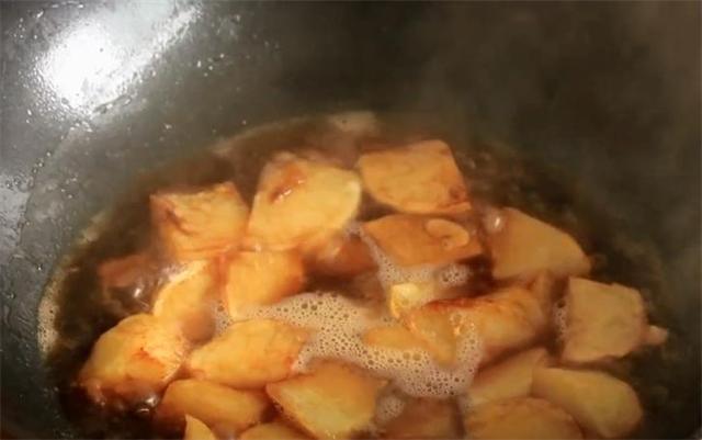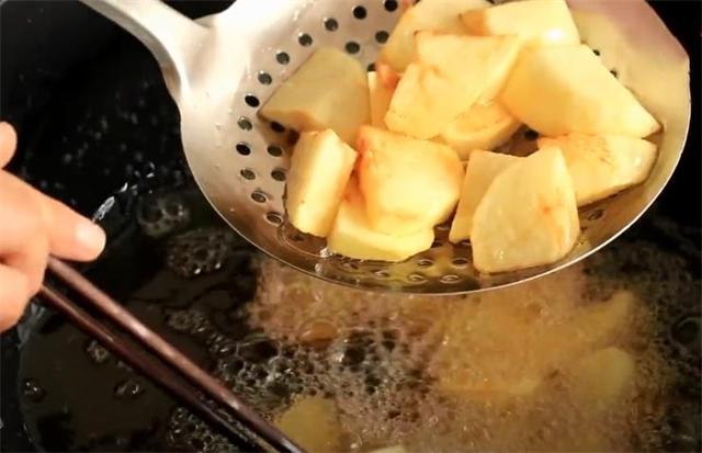 3.油溫六成熱下入土豆,炸至金黃后撈出。