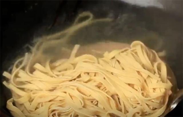 4.鍋里水開后加點食鹽,把豆腐皮下鍋焯水,焯水可以去除豆腥味,口感更好,焯水一分鐘后撈出過下涼水。(www.ws46.coM)